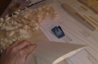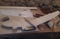Kluz je opravdu dobrý, vlivem hrubšího povrchu celobalsového křídla letí krásně pomalu a je vidět, že to bude citlivé na termiku. Váha ukazuje 172g včetně 400mAh aku, které váží 36g. Pokud tam dám 150mAh, které váží 25g a odlehčím o 3g ocasní plochy, tak se dostanu na 158g. Zajímavé je, že nebylo problém sehnat materiál a docílit předepsanou hmotnost, koupi jsem od Pelikana balsu s označením lehká, v obchodě jsem si vybral z balíku prkýnek ty nejlehčí kousky. Rozdíl byl až 20g na prkénko. Ale nic speciálního ji v obchodě na skladě.