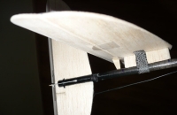Tuhost je vynikající, křídlo nepotřebuje žádné výztuhy. Po trimování jsem házel naplno asi do 30m a ladil startovací režim. Časy okolo minuty.