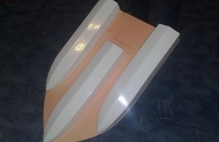 Stavba začala skicou na papire a naslednym vytvořenim 3D modelu v programu autodesk inventor 2010 ktery mi velmi pomohl pri navrhovani slozitejsich tvaru (dute kabiny a skluznic). Hlavní nosná deska je vytvořena ze dvou desek eps slepenych k sobě purexem, diky tomu je daleko pevnejsi nez kdyby byla v jednom kuse a spolehlivě udrží veškere rc vybaveni.