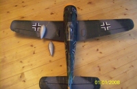 FW-190 je postaven z extr. pol. , stříkán balakrylem, začínal jsem s polystyrenákama na rozpeti 800mm Mustang, 1100mm Corsair , 1300mm FW-190 , 1600mm ME-109 a nyni delam 2000mm P-40.Dnes již má FW jiného majitele.