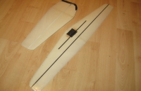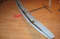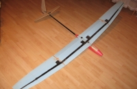 Zatím můj poslední stroj, první postavený technologií XPS+sklo pomocí vakua. Vzhled křídla zatím nic moc (příští už bude určitě hezčí), létá ale parádně. Trupová gondola balsová, olaminovaná. Profil řady AG 44 - AG 47.