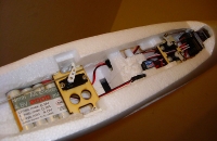 Pokud bych si chtěl se stavbou vyhrát a ještě více ušetřit na váze, ale dnes, po záletu, si myslím, že už by to bylo ke škodě věci, tak bych možná posunul destičku se servy pro směrovku a výškovku směrem dopředu, získal tak víc prostoru pro přijímač a kabeláž a usnadnil si tak dovážení. U svého kusu jsem serva nechal tam kde jsou od výroby.