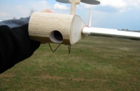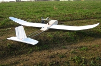Konstrukce je jednoduchá :gondola vyrobená z 1mm a 1,5mm silné překližky vylepená 10mm EPP. Čumák je vyplněn EPP a potažený balsou. Fotoaparát je umístěný v čumáku, zespodu přišroubovamý. Dozadu vedou dvě 8mm uhlíkové trubky, na nichž je umístěna výškovka a směrovka z 10mm EPP. Náběžky jsou na nich balsové. Křídlo jsem použil z Easyglidera, bez křidélek. Křídlo jsem říznul za spojkou a udělal vzepětí, kvůli stabilitě a řízení pouze výškovkou a směrovkou.