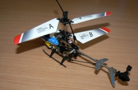 Vysielač je trojkanálový z infra a integrovanou nabíjačkou. Vrtulník má vo výbave i USB kabel pre nabíjanie cez PC. Ovládač je napájaný 6 x AA NiMH SANYO Eneloop.