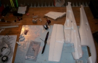 K němu jsem koupil motor RAY 3530/14, kvůli kterému jsem musel z důvodu rozměrů uříznout čumák, na něj přilepit motorovou přepážku, přišroubovat motor, a teprve na tuto přepážku nalepit zpátky uříznutý a vydlabaný čumák. Hmotnost a výkon motoru se mi zdála ideální, kdyby náhodou měl startovat s plováky z vody.