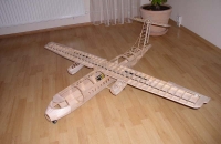 Ahoj, tak ešte nelieta. Dnes som s ním bol prvý krát vonku rolovať. Lietať ale bude to je isté, lebo pri jednom rozjazde mi nechtiac vzlietlo a ja som spanikáril a pritlačil ho späť. Nemám totiž ešte upevnenú baterku, nastavené ťažisko, poriadne zalepenú výškovku, tak som nechcel lietať, len skúsiť motory a rolovanie. Náraz si odnieslo predné koleso, musím to opraviť a pôjdem zas. Neviem ako sa to bude správať vo vzduchu. Neviem, či budú reagovať krídelká a výškovka, mám celkom obavy. Výkonu je ale až až...