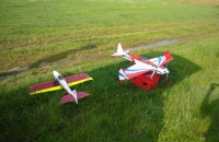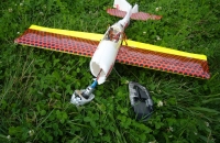 Tréninkový akrobat:) První akrobat, který létám. Létá pěkně i na pomalých rychlostech. Někdy je však obtížné rozpoznat, kdy už je v pádové rychlosti, ale vždycky to jde zachránit:). Zatím jsem vždy létal EPP, takže se s ním teprve učím, ale jsem hafo spokojenej:) Let po zádech v pohodě, rychlé obraty atd, ale na 3D to určo není, což mi nevadí, vzhledem k mým zkušenostem.. Haluz, že to ten stejnosměrný motorek takto utáhne (moc jsem tomu totiž nevěřil)..:) Jinak je to luxus, pohodový rekreační polétání.