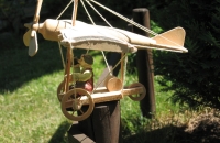 Model nelétající z lipového dřeva byl zhotoven a je umístněn před dveřmi do model. dílny,potah-plátno-ruční práce.Upoutá pozornost před vstupem/ fantazie/.