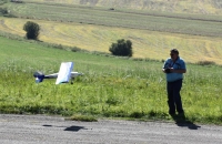 No, když jsem si s Commanderem zopakoval jak se řídí model a zbavil se trauma, že už jsem vše zapomněl a už jsem starej na to se to znova učit, přišla doba pořídit nový stroj. Model dodává Pelikán takřka hotový a je určen pro spalovací šestapůlku. Já jsem šel ještě dál a koupil jsem model komplet hotový na modelbazaru, s pohonem elektromotorem a vyrazil s ním do Bolešin. Při prvním přidání plynu při pojíždění jsem však škrtnul o travnatý povrch a úložná deska motoru z 2 mm překližky vzala za své. Novou jsem udělal z dvojky duralu. Model jsem vzal do Mýta a zálet svěřil Miloši Petrbokovi. Ten tak ochotně učinil, „děkuji“, no a já opět vyrazil do Bolešin. Když jsem chtěl znovu po letu nabít baterii, zjistili zkušenější kolegové, že je dost horká, a také poněkud nafouklá, takže bylo zase po lítání. V motorové přepážce jsem vyrobil pár chladicích otvorů. Baterka po vychladnutí trochu splaskla a tak jsem jí nabil a vyrazil opět na letiště. Motor ale moc netáhnul a navíc bylo dost slyšet proudění vzduchu kolem modelu. První jsem přičítal zničené baterce, druhé větracím otvorům. Příčina byla ale úplně jiná. Namontoval jsem obráceně vrtuli. Po její správné montáži létá model bez problémů cca 8 min s baterkou 2,6 Ah. Samozřejmě ne stále na plný plyn. Jedinou závadou dosud byl uražený podvozek při přistání do vysoké trávy, ale to spravil vteřiňák. Model v této konfiguraci létá k mé plné spokojenosti. Experti by zřejmě dali výkonnější motor a větší baterku, což není problém, model vozí vepředu deset deka olova.