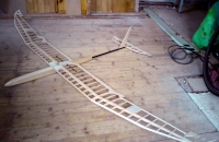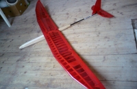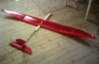 Tak zalétáno. Jsem spokojen. Trochu jsem dovážil a létá neskutečně dobře, ovšem jako čistej termik. Jak se to pustí rychle, jde to do flatru, ale to ovšem je chyba konstrukce a naštěstí vim co napravit. Takže tohle letadlo bude na letní vánkovou termiku, páč jí saje uplně samo, točí i na pětníku a plán překreslim na lepší spojku, Dbox a skříňku u závěsu křidélek....tam je to slabé a bez boxu se to rozklepa při větších rychlostech a výsledek je fluter. Pak to bude o dost zajímavjejší. ...člověk se hned zaraduje když má na čem stavět...:-)))