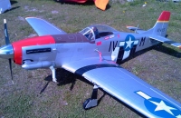 Moje první velká polomaketa. Mustang se mi vždy líbil a tento od Kyosha je zajímavý. Postavil jsem ho a potom skoro půl roku ležel v hangárku pač jsem se bál s ním létat. Vytáhl jsem ho až nyní a nebyl jsem zklamán létá nádherně a klapky fungují exelentně přistání skoro krokem.