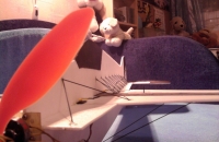 Tak model osazen. Čeká na zálet :-) hmotnost bez táhel byla 143g s táhly odhaduju 150g nanejvíš. až bude létavé přihodím koment jeho vlastností ve vzdzchu a mozna i video:-D bude to muj prvni let v hale takže se i pobavíte:-)