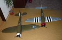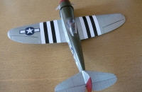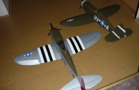 P-47 jsem měl postavenou již dříve a to v obou verzích ale na podzim jsem dělal voloviny nízko nad zemí a odneslo to křídlo a ocasní plochy proto jsem se rozhodl postavit novou a verzi Razorback upravit po asi 3 týdnech práce poprvé vzlétl ale letěl jsem asi 30 vteřin protože strašně foukalo a sněžilo nevím zdali se tomu dá říct zálet ale letěl pěkně a přistál přímo na námeť jako do peřiny.Prvotní dojem byl uspokojivý uvidím jak bude létat až bude přijatelné počasí, oba Thunderbolty jsem osadil novým motorem e-max GT2215/09 které modelům dávají dostatečný výkon oproti předchozím modelům jsem poupravil výrobu ocasních ploch které již nedělám z izolace pod plovoučky ale taktéž z xps bachl síla 1 cm nařezán odporovou pilou a zabroušen do profilu od oka,model je celý z xps Bachl natřen balakrylem a barvičkami revel kabina z pet lahve od cocacoly řízené funkce M,V,K.Vyobrazený stroj dle markingu  pplk F.Gabresky 28 vítěztví, se základnou Boxted v Anglii  léto 1944.