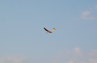 O to víc bolelo, když jsem si dával navečer ještě jeden start a při rychlém stoupáku jsem v uctivé výšce ztratil kontrolu nad celým letadlem.........nic....."nasink" jak říká kolega. Guppka se vyrovnal, chvilku kroužila a pak si to štrádlovala přímo nad město, kde bydlím. Krásně plachtila až byla z dohledu....... Po 3 hodinovém hledání jsem šel tmou domů a říkal si, co budu dělat na dovolené(za týden)...AHA.