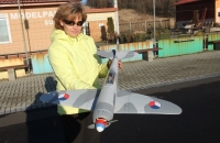 Celé letadlo je z extrudovaného polystyrenu, celkem z deseti dílů. Je lepené Purexem a LA tmelem. Náběžka a odtokovka jsou polepené hnědou lepící páskou. Výškovka a směrovka jsou z 0,6mm dýhy polepené z obou stran 3mm depronem.Celé letadýlko je vytmeleno, obroušeno, natřeno základovkou a znovu obroušeno. S kabinkou jsem to měla velmi jednoduché. Martin měl s její výrobou pro svoji Lavočku trochu problémy a tak po nepovedených pokusech o její laminování vyrobil kabinku osvědčeným postupem,( kopyto z Ytongu je prostě nejspolehlivější :-) ) i pro mě. S elektronikou mi samozřejmě pomohl taky, bez něj bych v tomto směru byla ztracená. Vybranou kamufláž s imatrikulací posuďte sami, mně se libilo být trošku vlastencem :-). Všechny použité barvy jsou akrylátové, znaky jsou vytištěny na laserové tiskárně přilepené naředěným Herkulesem. Nakonec je Lavočka lakovaná bezbarvým lakem. trochu jsme se zasekli u kužele, kužel je přilepený u unašeče na kruhovou destičku z výstražné destičky z PVC, která se při utažení unašeče prohnula a kuželi nám hází, takže zálet byl zatím odložen :-(. Jestli dostanu za moji snahu nějakou známku, tak si ji nezasloužím jen já, ale i Martin, bez kterého bych Lavočku dnes vyfotit nemohla.