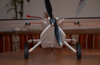 Po prvních letech bylo potřeba vyosit motor doprava (předtím 0°) a podle těžiště upravit již napevno všechny komponenty. Na divočinu by to chtělo silnější motor, ale na venčení psa za barákem na louce a pohodový lety v klidném vzduchu to stačí. Na 610 mAh baterky v pohodě 12min letu.