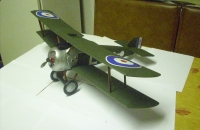 Toto je momentálně moje poslední dílo,čím jsem starší,tím menší letadla stavím.Stavěno ze stavebnice v rozsypu,model je původně určen pro pohon gumou jako volný,nebo jako upoutaný na malého COXe.Já jsem se rozhodl pro přestavbu na elektro.Proto bylo nutno provést nějaké stavební úpravy,hlavně motorovou přepážku jsem udělal z pevnější překližky,původní se mi moc nezdála.Dále bylo potřeba vlepit 2 nosníky,v místě kabiny,pro uložení serv V a S.Také jsem použil pevnější podélníky na stavbu zadní a horní části trupu.Původní byly moc měkké.Dále bylo potřeba nainstalovat bowdeny pro struny ovládání ocasních ploch a vepředu dole udělat do trupu otvor pro baterii.Původně jsem na tento otvor měl udělaný kryt,ale s použitou baterií se již nevejde.Baterie je přichycená na zadní stěně motorové přepážky na suchý zip.Regulátor je lípnutý oboustrannou páskou vedle motoru.Vzhledem k tomu,že éro má krátký předek a těžiště má být na náběžce spodního křídla,musel jsem do krytu motoru vlepit cca 90 g olova.Povrchová úprava je stříkaná barvami Revell a matným lakem téhož výrobce.Vzpěry a podvozek jsou mořené a lakované.Původní dřevěná těžká kola,která výrobce dodává,jsem nahradil plastovými z obchodu.Plochu křídel si již nepamatuji,ale zatížení vyšlo 32 g/dm,zvolený motor s touto vrtulí má výkon více než dostatečný,visí na vrtuli.Jediná vada modelu je,není místo k instalaci serv na křidélka a musel jsem je tedy při stavbě zrušit.