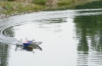Pro Pistola - do serv mi snad neteče, kolem tisícihranu jsem je namazal mazadlem na jehlový ložiska (ale už je to dávno) Motor jsem musel víc vyosit dolů. Baterie LiPo 3S 800 mAh je normálně dole. Přímo vodotěsný to tam není, ale nějak extra tam neteče. Horší bylo, že teklo do plováků, to jsem vyřešil nalepením "kevlarové" samolepky a ošetřením zředěným Herkulesem. Teď už v pohodě.
