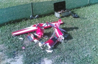 Další rychlý stroj v mém hangáru. V době zakoupení se ještě nevyráběla verze EP, tak jsem byl nucen předělat GP. Lítala jako z praku, krásně rychle a rovně. Hlavně teda rychle. Se svou vahou letící tvárnice, to ani jinak nešlo. Na poslední fotce vydíte co z ní zůstalo, když v nízkém nožovém letu (panáček se předváděl ), trefila křídlem kupku sena. To se ohnula i 6mm hřídel motoru. Ale nezanevřel jsem na ní, zakoupil náhradní díly, opravil jí a nyní už v původní GP modifikaci lítá s motorem ASP FS 8,5 ccm. Před vánoci jsem jí vzal i na lyže :-)