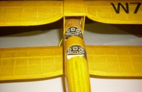 Tady je další z mojich tintítek.Stavěno z rozsypu,jak jinak.Upraven byl podvozek,musel jsem jej udělat vyšší,aby při startu ze země,při zvednutém ocasu,nechytala vrtule o zem a start vypadal maketově.Je to hodné érečko,s touto pohonnou jednotkou zvládá i silnější vítr.Potažen je barevným papírem a lakován,kryt motoru je stříkaný.V současné době je odstrojený a je na prodej.Nějak se mi už nevejde do hangáru:-))