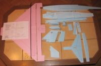 Desky jsou z extrudovaného polystyrenu které mi kdysi nařezal kamarád Milan,právě na modely tipu parkflyers.Jinak se dají spolehlivě použít i desky pod plovoucí podlahy jak zmiňuje Prošek Jarda.Jedinou navýhodu mají a to ten vroubkovaný povrch z jedné strany,u trupu to nevadí,ale na křídlech se mi to moc nelíbí.