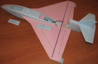 Pár slov ke stavbě: Celý model je postaven převážně ze zbytků desek extrudovaného polystyrenu,jen na křídlo je potřeba trochu větší deska.Křídlo je vyztuženo uhlíkovou trubkou o průměru 6 mm a dvěma bambusovými lištami,které nahradily uhlíkové pásky oproti originálu.Náběžné hrany křídla a výškového kormidla jsou kvůli "zranitelnosti" olištovány balsovými lištami.Spodní část trupu je proti odření při startech a přistáních polepena fólií DUROFOL.Vše je pak vytmeleno šlehaným tmelem,vybroušeno a povrchová úprava je barvami Balakryl.K lepení jednotlivých částí je použito převážně lepidla UHUpor,místy PUREX a exponovaná místa jsou lepena EPOXYDEM.