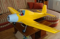 Postaveno podle zvětšeného plánku M. Vostrý klasickou konstrukcí balsa, smrk atd. Odpruženy duralový podvozek vlastní konstrukce.