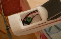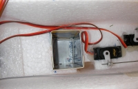 - Vyrobil jsem držák akumulátoru z neplatných plastových karet ("kreditky", klubové karty, ... ). V diskuzích na webu jsem vyčetl, že nejhorší poškození tohoto typu modelu způsobují akumulátory, které při upevnění podle videonávodu při nárazu "procházejí" dnem trupu či předkem letounu, kde způsobují svou poměrně velkou kinetickou energií značné škody. Vyztužil jsem proto dno trupu nalepením "kreditky" pod akumulátory a na akumulátory jsem vyrobil "krabičku" z kreditek (slepených CA lepidlem), kterou jsem vlepil do otvoru, vyřezaného pro akumulátor. Akumulátor se vkládá do tohoto držáku a zajišťuje proti vypadnutí při záporném přetížení "sucháčem". Tato úprava se zatím velmi osvědčila, akumulátor nikdy nevypochodoval, ani při poměrně tvrdých nárazech modelu na zem.