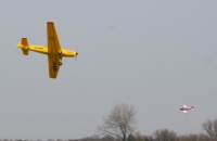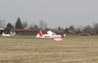 ...do plánku sem se díval jen jednou a to kvůli těžišti, výrobce udává 115 mm od náběžky, je to nezvykle vzadu ale za to může kladnej šíp křídla, ostatně jestli poloha těžiště sedí zjistím až po záletu...myslím že originál je řešen odnímatelným křídlem, na to jsem se vykašlal, není to zas tak veliký eroplán aby nemohl být zťuklej pohromadě, udělal jsem klasickou krytku odřezáním části trupu, zeslabené místo jsem zesílil smrkovými nosníky 2x10 a baterky dávám vrchem, batriák je ze dvou pásků EPP, baterka jde mezi ně "na těsno", ostatně tak, jak je to vidět na obrázcích.