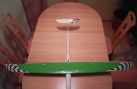 nechal jsem mu potáhnout křídlo jarní zelenou od kamaráda z klubu, na konce kříde jsem vybral a vystříhal do tvaru šachovnici. Je pěkně vidět na dálku. práce byla ještě s dírama na chlazení ale vyplatilo se , na réglu jsem měl zatím max. 52 stupňů, motor vlažnej, na ten" jenom čtyrčlánek" neni divu, takže vše zatím paráda, maximální spokojhenost.