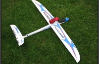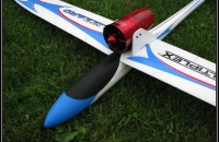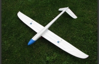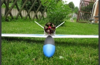 A ještě pár slov ke stavbě. Držák pohonu je z finské překližky - boky tl.3mm, spodní díly pak z tl.4mm. Prvotní tvar jsem si nakreslil v AutoCADu, vytiskl, vystrihnul z papiru a nalepil na balzu. Následně jsem si vyrobil prototyp a overil ze to bude sedět. Finální držák potom dostal nátěr 1x nitrolak, přebroušen a stříknut autolakem barvou "sněhová bílá".Celé letadlo jsem slepil pomocí CA lepidla středně husté konzistence, celkem ho padlo 25g. Na křídla jsem použil originální výztuhy ze skelné tyče, protože uhlíkové tyče nešly do takových obloučků ohnout. Na trup už jsem pak použil uhlíkové tyčky. Držák pohonu se šroubuje společně s křídlem k trupu pomocí dvou nylonových šroubů M5.