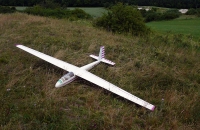 Zálet 19/6/2011 na svahu při ideálních podmínkách ZJZ9-15m/s(v nárazech ani nehádám). Nějaké zaklouzání nepřipadalo moc v úvahu, těžiště jsem připravil doma. 1.hod obouruč,stoupá-potlačuji, přistávám))upravuji těžiště z +500g na +650g. 2.hod, nahoru dolu, nahoru dolu, boj, klení, přistání uprostřed pole obilí-po dešti!!Následuje procházka, boty durch a veselí, že nouzové přistání dopadlo úspěšně, éro bez poškození. Další úprava těžiště na +700g, 3.hod, 15min. let vč. 1lopingu (létá to samo, obratnost skvělá-pro mě nový akro svahák, v což jsem vůbec nedoufal)) a přistání na stromě-bez poškození či šrámu. Přečkání deště-složení, zabalení, vybalení, úprava těžiště na +800g, přilepení přepážky serv(stromová eskapáda) a 4.hod, přes 60min letu, přistání na kolečko, paráda. výměna aku 5.hod, dalších 60min, cesta domů. To se bude dnes usínat:)