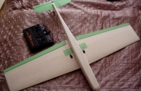 Kridlo je postavene z polystyrenoveho jadra + balsovy potah, nosnik tvoria dve smrekove listy