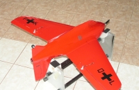 Model dorazil důkladně zabalen, bez újmy po měsíci stráveném na celnici. Laminátový trup je tvarově v pořádku, jen na něm trochu šetřily. Špice následně vylaminována uhlíkem, pro pozdější tuning. Křídla jsou z PS potažená balzou a fólií k trupu se musí přilepit. Výlisek kabiny bylo potřeba trochu víc přizpůsobit tvaru trupu. Jinak je stavba velice jednoduchá a vzhledem k velikosti trupu není ani problém s uložením elektroniky a baterií.