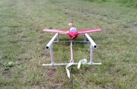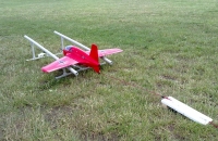 Další lety proběhly za bezvětří a tam už při jednom odhozu nastal problém s prosednutím až na zem a „plácnutím“ do země. Poškozena byla jen přistávací lyžina, která při následné opravě byla zpevněna, také jsem přidělal háček na střílení katapultem. Katapult mám doma již tři roky teď na něj konečně došlo.