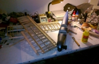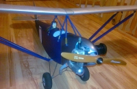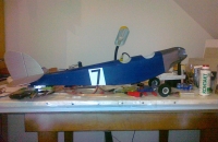 Po 12ti letech jsem se opět vrátil ke stavbě modelů letadel. Toto je můj první pokus po té době. Předtím to byla jen letadla poháněná gumovým svazkem a volné elektro modely. Stavba byla podle plánku Vladimír Caha RC Revue 046. Jedná se o klasickou stavbu. Potah jsem provedl folií Oratex. Jedná se o fólii která imituje potah plátnem. Bohužel tato maketová výhoda je vykoupena větší hmotností. Takže model celkově po vyvážení má o cca 130g více. Váha navíc způsobila, že letoun už nemá potřebný výkon, takže bude nutná úprava v podobě těžšího a silnějšího motoru. Jinak jsem byl se stavbou spokojen. Letadlo sem stavěl skoro rok, mezitím jsem dělal další letadla, a stavěl sem jen po večerech a když se mi chtělo.