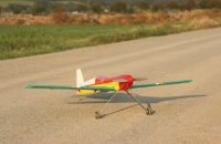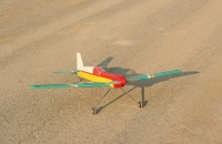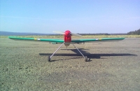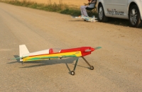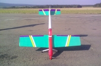 No, já odstartoval a strašně to houpalo, to tím těžištěm, byl jsem přesvědčen, že je po něm, že ho na zem nedostanu, jak jsem pohnul výškovkou, tak to byly rozdíly cca 7 m nahoru dolů, udělal jsem jen dva okruhy a vyklepán a zpocen zkusil přistát jak mikrochirurg, taky foukalo kolmo na dráhu. Tak jsem šel šikmo zboku a kupodivu by to i vyšlo, jen prostě cca 2 m to sedlo před asfalt do té trávy. Mohl jsem udělat ještě jedno kolo, ale nevěřil jsem, že by se mě to povedlo líp, rychlost měl malou celkem, tak jsem ho nechal sednout. Podvozek už zpevňuju a lepím. To těžiště bylo moc, ale opravdu moc vzadu. Motor asi stačit bude určitě. Letěl jsem max na půl plynu. jen, pokud to dovážím, tak výdrž vidím tak na 4 minuty. Už mě napadlo tam dat 2ccm žhavíka co mám, ale nechce se mě to už předělávat, časem koupím nějakou baterku kolem 3500 mAh. Lítat to bude, jen je to trošku víc adrenalin, ale zvyknu si a taky je to dolnoplošník, tak je to víc vratký. Ale o to jde, je to příprava na lítání se spalovacím superstrojem ::::::::::::::::::::)))))))))))))))))) Jinak, pokud bych tam ten podvozek nedal, tak do trávy by to bylo v pohodě, mohl bych tam dat i sklopku, alespon pro ten zálet, sakra to ještě promyslím :::::::::::::)))))))))))) Ale asi ne, upravím těžiště, počkám na bezvětří a jede se znova :::))))