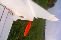 Tak než jsem odladil celé ero, tak jsem ho na rušení několikrát rozbil. Předek už jsem lepil tak 4 krát. Změnil jsem umístění antény a přidal feritový kroužek a nyní to vypadá ok. Létá se stím fakt perfektně, pěkně to pluje, zkrátky všechny důvody delta křídla.