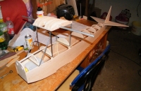 No nevím co konkretního bych ke stavbě psal?! Je to klasická stavba z balsy a překližky...laminánů mám plný zuby proto tam nechci ani kousek kompozitu(když to bez toho šlo dříve tak teďka to musí jít taky)Akorát jsou v plánku drobné nepřesnosti co se týká kreslení, např.trupové přepážky byli docela nesouměrně nakreslené atd...
