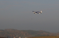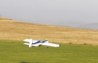 Zálet proběhl úspěšně dne 23.10.2011, dvacet dva měsíce od začátku stavby. Při prvních startech jsem trochu laboroval s vrtulemi (s velikostí stoupání). Nakonec jsem zvolil vrtuli APC E 12x10 palců. S ní má motor statický odběr 47 A. Extra je rychlejší než jsem předpokládal s ohledem na tloušťku profilu. Zatím jsem s ní odlétal třináct startů a ještě pořád se seznamuju s jejími vlastnostmi. Je to nejtěžší model s jakým jsem doposud létal. Musím si zvyknout hlavně na vetší sertvačnost. Obratnost je odpovídající tomuto druhu modelů. Není to žádný 3D akrobat jak by se mohlo zdát podle proporcí modelu. Ale klasickou akrobacii zalétá, podle mých pilotních schopností, bez problémů. Křidélka jsou dost citlivá, výškovka a směrovka jsou „v normě“. Chování modelu při přetažení je dobré. Nechá se hodně natáhnout, při přetažení nepadá po křídle, ale jen se prosedá. Jediný problém mám s podvozkem – jednak se stále „rozkračuje“, jednak je s ohledem na použitou vrtuli příliž nízký. Plánuji tedy výrobu nového podvozku. Zatím nejsem rozhodnutý jestli bude, stejně jako stávající, ohnutý z duralu, nebo jestli zkusím udělat podvozek kompozitový.
