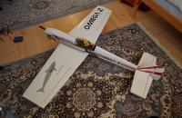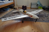 Moje oblíbené letadlo, postavil jsem jej v roce 1998 ze stavebnice SuPr Louny. Je to akrobat ve starém stylu, úplně nezáludné letadlo, velká plocha křídla mu dává neuvěřitelně malou přistávací rychlost i při tak velké hmotnosti. Zalétá majestátně klasickou akrobacii kde je vidět setrvačnost modelu, krásné souvraty atp. MVVS 10 s rourou a vrtulí APC 12x6 točí cca 12600ot/min a dává tah vyšší než hmotnost a i tuto hmotu uvede do dlouhé vertikály. Rozsah rychlostí je veliký, průlety mohou být i velmi rychlé a pro přihlížející je to atraktivní. S několikaletou přestávkou mezi lety 2001-2009 s ní létám když to jde a létám s ní velmi rád. Konstrukce je klasická, polystyren jádro křídla + dýha, trup celobalsový, robustní a odolné letadlo. Potaženo Oracoverem. V průběhu prošla několika úpravami, i na vzhledu, na některých fotkách je po opravách s provizorními nálepkami. Ale letové fotky jsou podle mě i přesto zajímavější než nejnovější statické. Jediná nevýhoda je ta, že ji musíte mít stále na očích, kam jí navedu, tam letí hlava nehlava, není moc samostabilní, ale to právě dělá ten skvělý dojem z letu. No a sotva co jsem jí letos udělal facelift (odstranil staré nálepky, žraločí pruhy atp...), vyřezal nová písmena atp. tak jsem jí při jednom přistání ztratil na vteřinu, protože se někdo blížil na dráhu a potřeboval jsem zjistit zda nejde nebezpečným směrem, a když jsem se ohlédl zpět, byla v betonovém sloupku. Takže opravuju díru v křídle.. jinak je celá, neuvěřitelný.