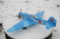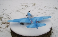 Tak jsem šturmovikovi a migu vystrouhal kamaráda.Nevím,čím to,ale tyhle stroje mě nějak zaujaly.Letadýlko jsem vystrouhal z xps systémem"Bull"a na zkoušku ho potáhl kloboukovým papírem.Slibuju si od toho trošku větší odolnost proti poškrábání,ale možná se pletu.V každém případě jsem získal další zkušenost,protože o tom to je si myslím.Samozřejmě se zvedla váha.Tohle éro ještě neletělo pro nepřízeň počasí a špatné přistávací plochy.Vyrobeno podle plánku p.Fary.Natřeno Balakrylem a barvy na příkaz ratolestí (stavím podle nich samé hnusné letadla).Jak poletí zatím nevím,nicméně s tímhle pohonem to něco na 3/4 plynu uvisí,tak myslím,že by neměl být problém.Pokud ovšem nespletu výchylky