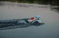 Model lode Katja od Robbe som získal ako second hand a po počiatočnej kontrole a nastavení som ju vyskúšal na vode. Pokiaľ som plával na NiMH 6 čl 5250mAh tak to šlo len akože. Potom som napojil LiPol 3s 1350mAh a to bolo hneď iné plávanie. Katjuška letela ako raketa, síce nevydržala dlho ale super sme si zaplávali. Po niekoľkých plavbách začana naberať vodu, asi cez púzdro hriadeľa. Teraz cez zimnú odstávku som to samozrejme porobil a premýšľam aj na nejakom tuningu. Uvidím čo ma napadne.