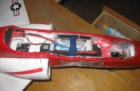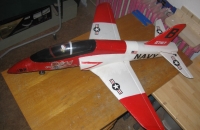 Lietam na 11.1 a 14.8 V Lipo 2200 mAH, letové časy 3-4 minúty pod plynom. Letová hmotnosť narástla na 1020 g resp. 1100 s 4 čl., bez baterky 840 g. Doplnil som pilota, vyrobil som pevnejší podvozok a použil som gumené kolesá miesto pôvodných penových. Po týchto úpravách už lieta výborne a nie je problém ani štartovať a pristávať na tráve. Momentálne je to moja najobľúbenejšia stíhačka, nie je zákerná a je dobre čitateľná na oblohe.