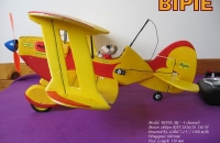 Môj prvý model z depronu (Extrupor 6 mm). Plánik je stiahnutý z internetu. Stavbu som prispôsobil mojim možnostiam a skúsenostiam a najmä požiadavkám vnučky. Bipie má za sebou pár letov. Som viac na vetrone, ale aj s Bipie sa lieta celkom dobre. Pôvodnú RC súpravu s pásmom 35 MHz som nahradil novou v pásme 2,4 GHz, takže drôt antény na modeli už nie je.