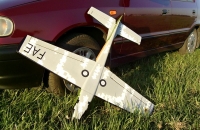 Po skoro roce v "hangáru", dnes konečně zalítáno a přistálo v celku, takže se už můžu pochlubit :-) Asi bude třeba ještě hnout s těžištěm a poštelovat táhla, ale bylo až nečekaně poslušny.