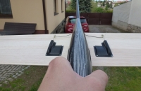 stejně jako můj ELAN byl již od Reicharda vyroben jako model bez potahu, pouze lakovaný. Navíc je výškovka i směrovka z plné balzy ( narozdíl od konstrukční a potahované na originálu ) a i ostruha je uhlíková ... a gondola je také celá uhlíková včetně překrytu kabiny ... jen je na gondole vidět že to není asi klasika, má nějaké drobné kazy ( že by model byl prototyp ? )