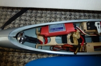 Elektroinstalace je jištěna přijímačovou baterkou 4xAAA 1000mAh SANYO a hlavní je baterka 4.článek 2650mAh která pohání slušný motor Turnigy SK3548-900ot/V. Kužel je Pelikán a vrtule je sklopka Graupner 12x6