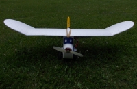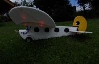 Vybavil jsem ji LED osvětlením a večerní polítání není problém. Poučený zkušenostmi jsem zvolil odpružený podvozek pomocí pružinek z propisky a nemohu si ho vynachválit (nebavilo mně pořád měnit gumičky na podvozku). Jinak klasická konstrukce z EPP.
