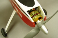 Měl jsem však jeden volný motor z rozmláceného Mustanga. Tož si říkám zkusím ... no a mám historickou stíhačku. Teto pohon ( adekvátní motoru 3,5ccm) z Majora udělal model do každého počasí ,tak tam již zůstal.